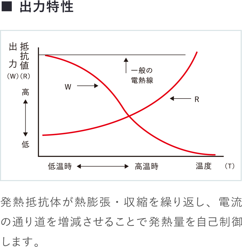 周辺温度に合わせて発熱量を変化させ、異常加熱を防ぐ