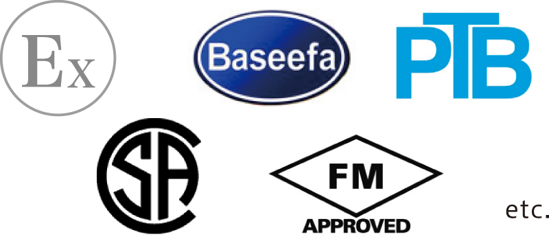 弊社扱いのレイケムブランドの⾃⼰制御ヒーティングシステムは、社団法⼈産業安全技術協会の防爆構造電気機械器具型式検定に合格しています。
