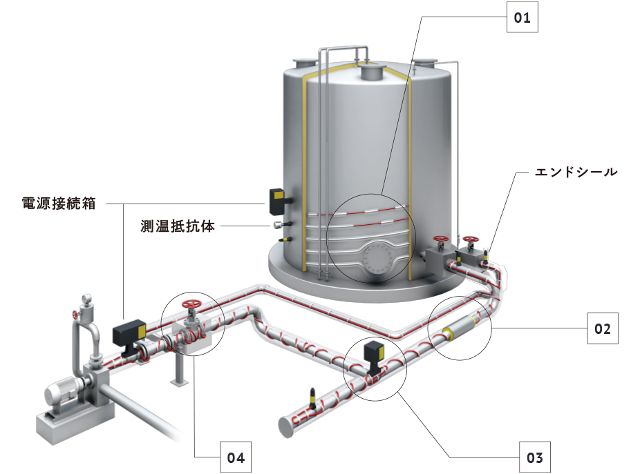 また、レイケムブランドのオート・トレースヒータ(自己制御型ヒータ)は、耐薬品性に優れ化学工業薬品、燃料油、食品等のプロセス保温にも最適です。レイケムブランドのオート・トレースヒータ(自己制御型ヒータ)の高い信頼性はその実績が示す様に原子力発電所、LPG貯蔵タンク、ウラン燃料製造プラントのような高度の技術を要求される分野にまで現在幅広く使用されています。