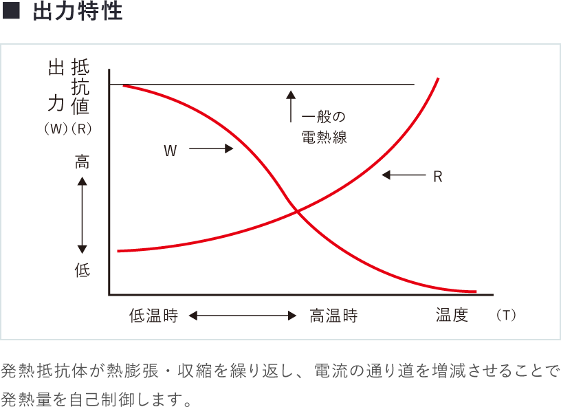 周辺温度に合わせて発熱量を変化させ、異常加熱を防ぐ