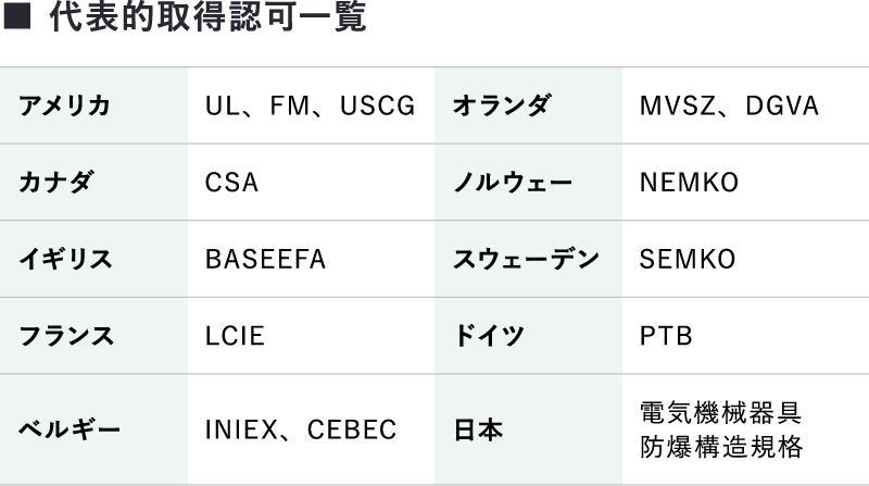 弊社扱いのレイケムブランドの⾃⼰制御ヒーティングシステムは、社団法⼈産業安全技術協会の防爆構造電気機械器具型式検定に合格しています。